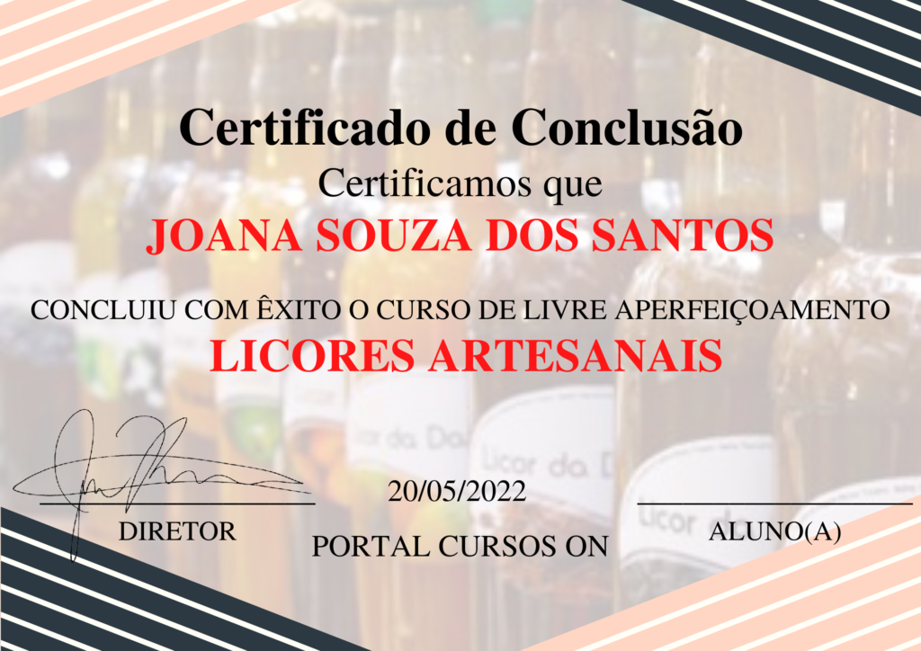 Após finalizar todas as aulas do curso você terá acesso a um certificado de conclusão atestando a sua capacitação no Curso de Licores Artesanais.